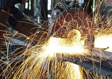 Estruturas metálicas e suportes, com detalhamento de solda, furação e acabamentos.